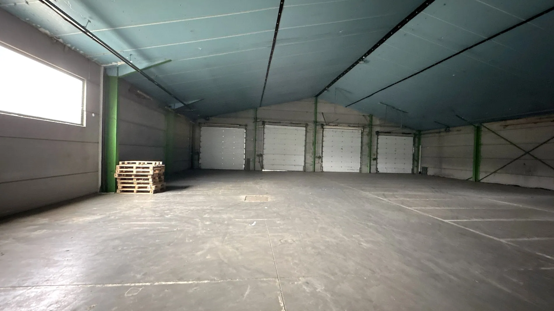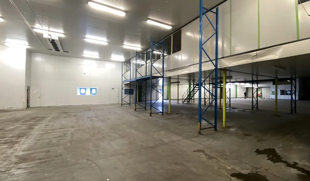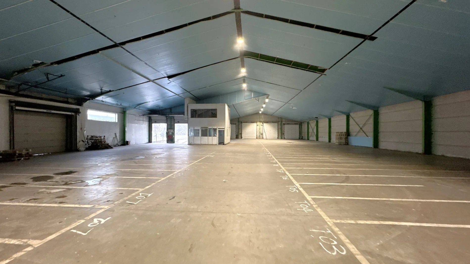 2.185m² magazijn met 2 laadkades, manuele sectionaalpoort van 4m hoog en 150m² inpandig kantoor