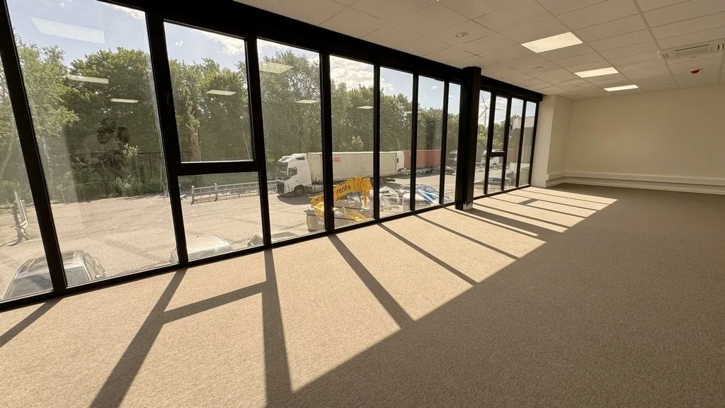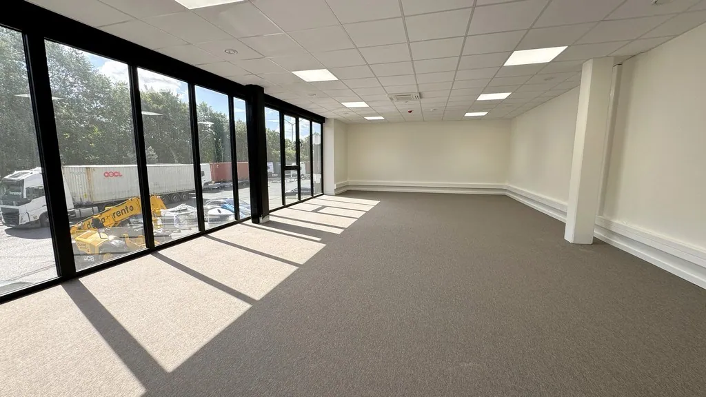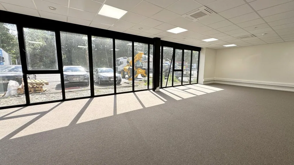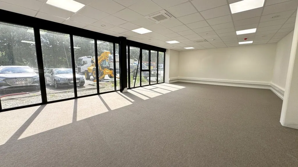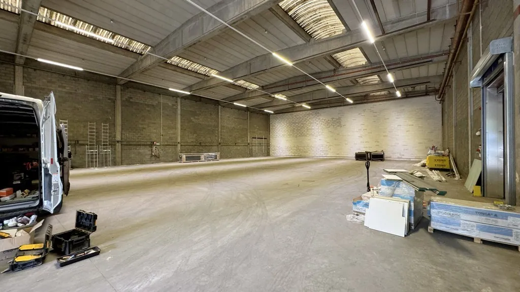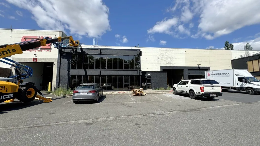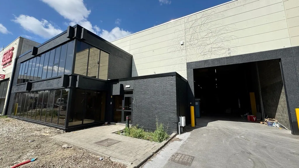 - unit B: 957m² magazijn met 247m² gerenoveerde landschapskantoren verdeeld over gelijkvloers en verdiep
