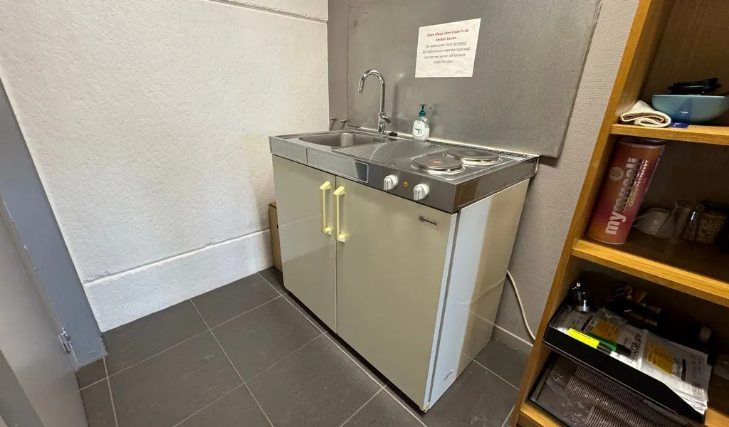 gelijkvloers: landschapskantoor, toilet en kitchenette