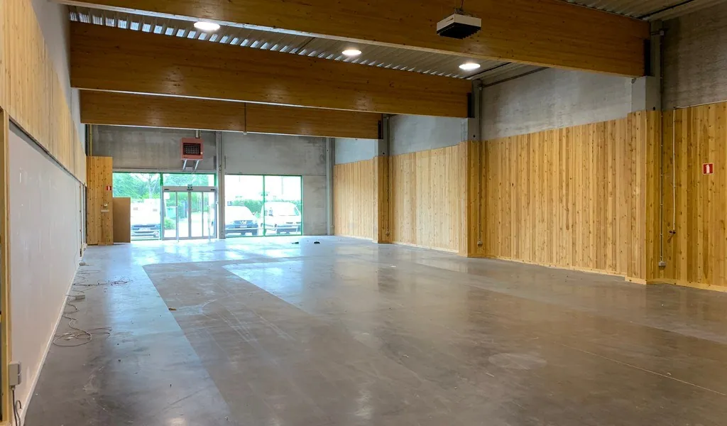 De beschikbare oppervlakte omvat 579 m² handelsruimte op het gelijkvloers, ideaal voor retail of showroomfuncties. De ruimte maakt deel uit van een commerciële site waar ook gevestigde namen zoals Wooners en Zwembad.eu aanwezig zijn, wat zorgt voor extra passage en visibiliteit.