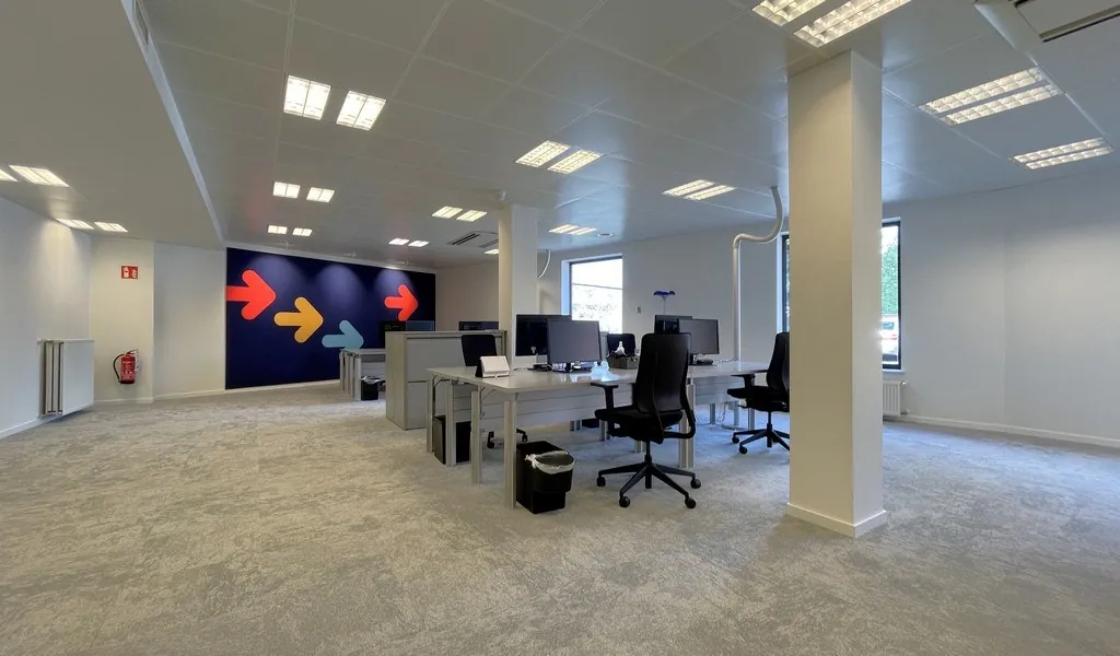 Jouw nieuwe kantoorruimte omvat een indrukwekkende 750m² op het gelijkvloers, met eigen keuken en sanitair, waardoor jouw team alle comfort ervaart. De ruime kelder van 540m² biedt extra opslagmogelijkheden voor jouw bedrijf.
