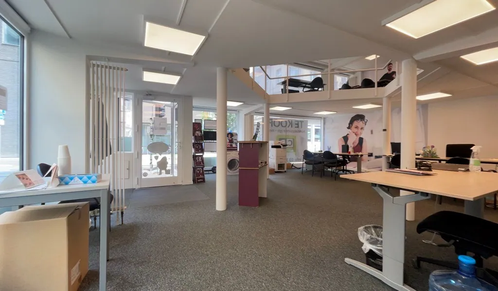 Met een totale oppervlakte van 255 m² biedt het pand alles wat jij nodig hebt om meteen aan de slag te gaan. Op het gelijkvloers vind je een open winkelruimte met twee toegangen vanaf de straat, een aparte vergaderruimte, een kitchenette en twee toiletten. De mezzanine is ingericht als ruime open work space met een extra vergaderruimte.