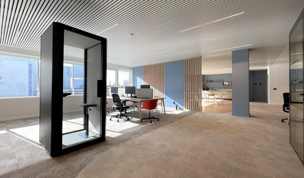 In dit iconische gebouw is momenteel een volledig ingerichte kantoorruimte van 375m² beschikbaar op de tweede verdieping. De ruimte is stijlvol ontworpen en uitgerust met: