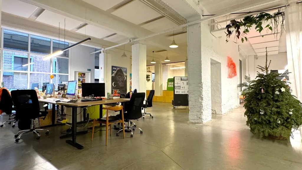 Open loftstructuur • hoge plafonds • veel natuurlijk licht • industriële uitstraling • hedendaagse afwerking • functionele en inspirerende werkruimtes