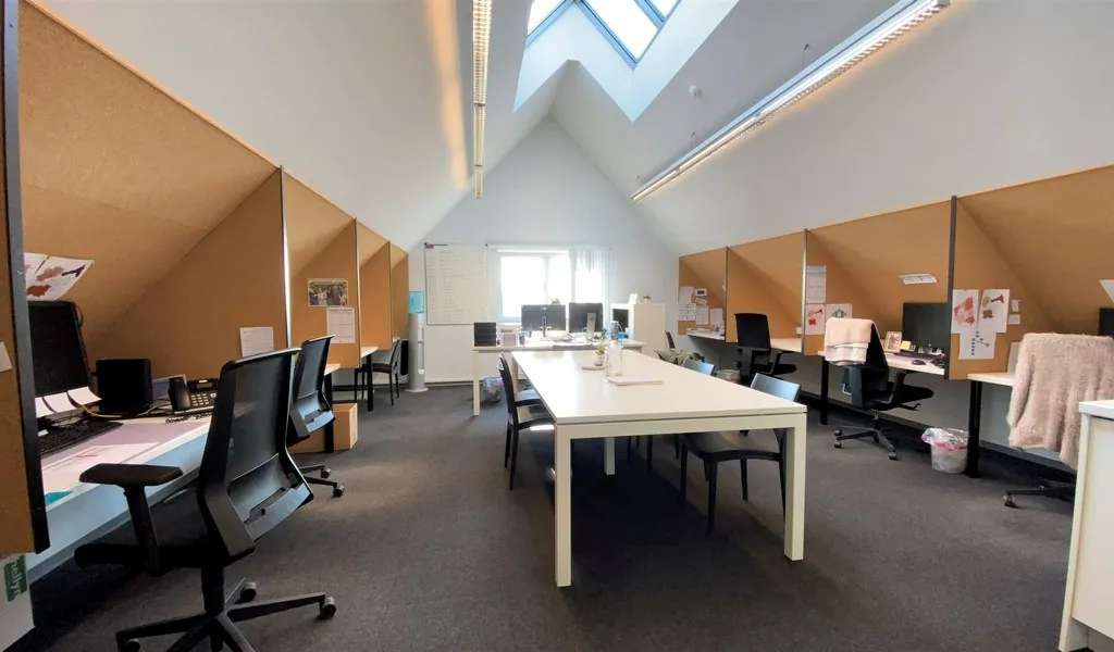 - 2de verdieping: landschapskantoor (81m²), meetingruimte (26m²), 2 aparte burelen (47m² en 35m²), kitchenette