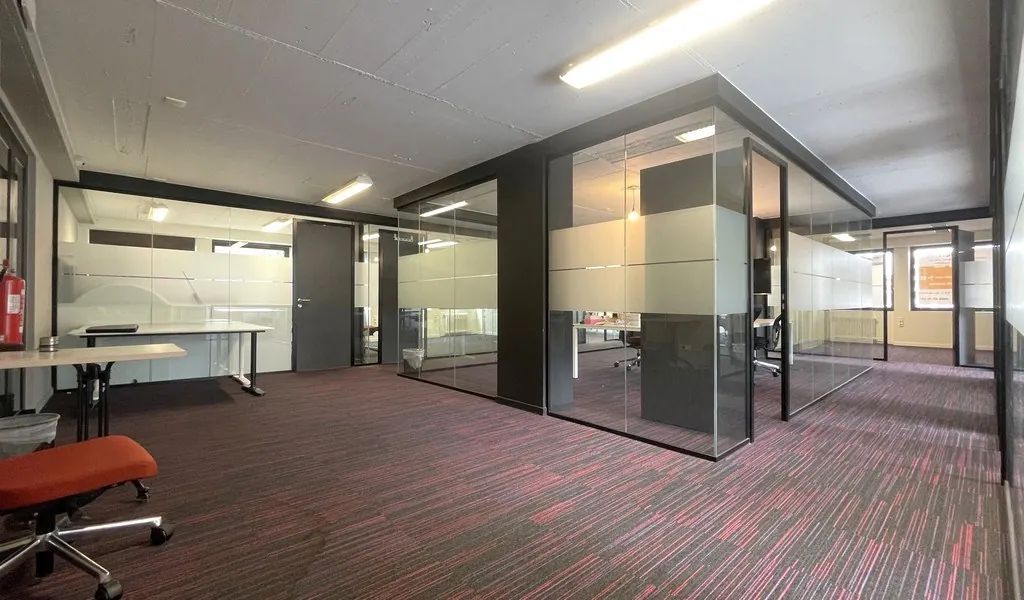De ruimte is voorzien van alle moderne faciliteiten: dubbel glas, professionele inbouw tl-armaturen, tapijt, gemeenschappelijk sanitair en keuken, en centrale verwarming op gas. Op jouw verzoek kan het kantoor volledig gemeubileerd worden.