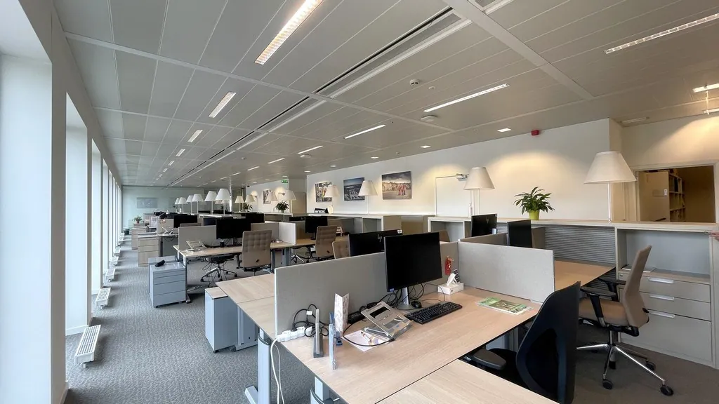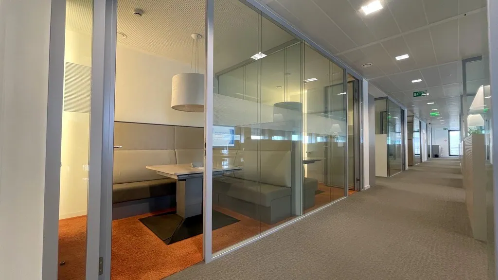 Het kantoor is uitgerust met alle moderne technieken, waaronder centrale verwarming op gas, koelbalken, mechanische ventilatie, branddetectie en camerabewaking. De toegang verloopt via badgecontrole, wat garant staat voor een veilige en professionele werkomgeving.