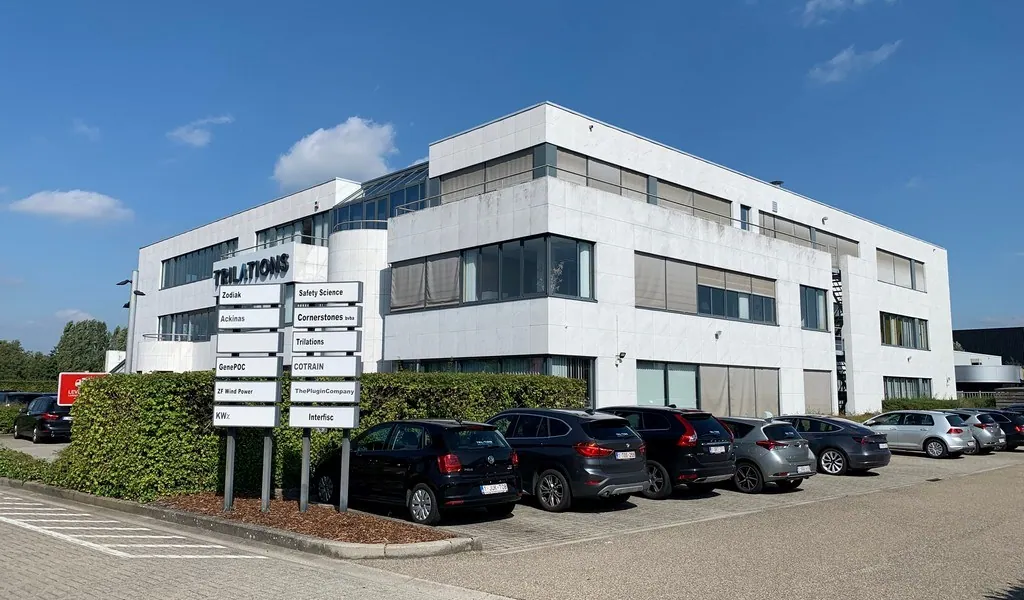 Modern kantoorgebouw aan Prins Boudewijnlaan (N173) in Kontich op een steenworp van de afrit E19 (Antwerpen - Brussel) en op wandelafstand van de bushalte.