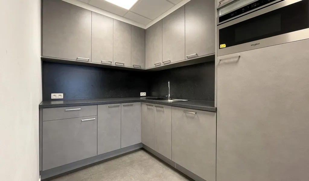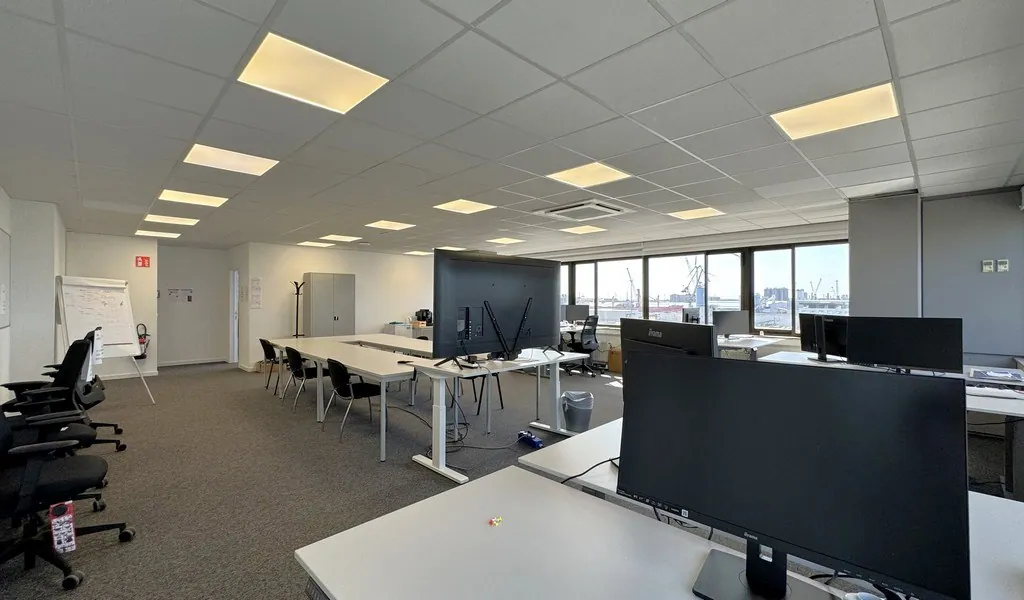 Het gebouw is recentelijk duurzaam gerenoveerd en voldoet aan de modernste standaarden. Met vernieuwd schrijnwerk, energiezuinige warmtepompen en zonnepanelen is deze locatie perfect voorbereid op de toekomst. Bij binnenkomst word je verwelkomd in een opgefriste inkomhal met een stijlvolle lounge, een ontspanningsruimte en een handige broodjeszaak op de begane grond.