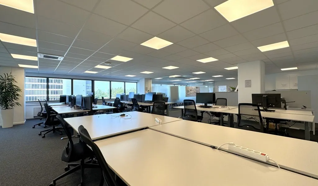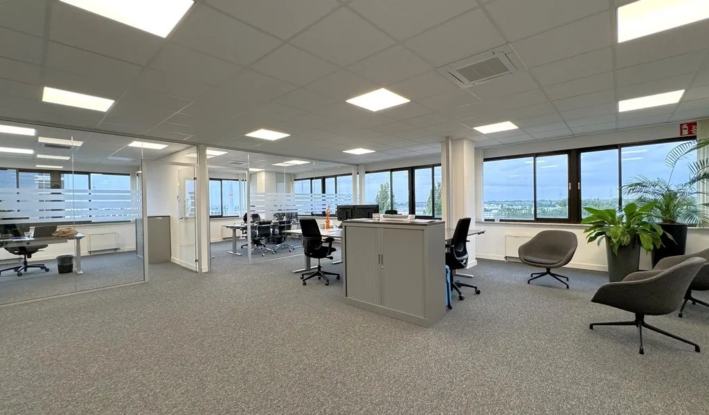 De beschikbare kantoorruimtes variëren van 58 m² tot 617 m² en kunnen volledig op maat worden afgewerkt in overleg met de eigenaar. Daarnaast biedt het gebouw een uitgebreid pakket aan voorzieningen, waaronder binnenzonwering, verhoogde vloeren met vasttapijt, verlaagde plafonds en een badgesysteem.