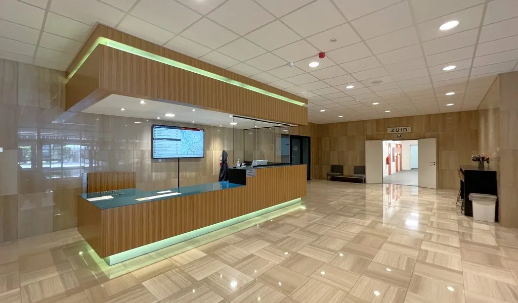 - Onthaaldesk, gemeenschappelijke keuken en sanitair