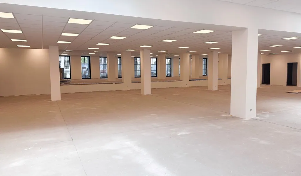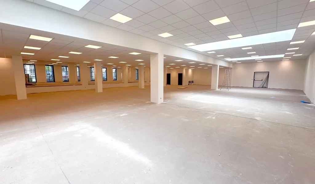 De kantoorruimte is modern ingericht met een vinyl vloer in houtlook (plaatsing eind juni), vloerverwarming via twee warmtepompen, ventilatiesysteem D, een akoestisch verlaagd plafond met ingebouwde LED panelen en drie grote lichtkoepels die zorgen voor aangenaam natuurlijk licht. De indeling is flexibel met ruimte voor landschapskantoren of aparte werkzones.