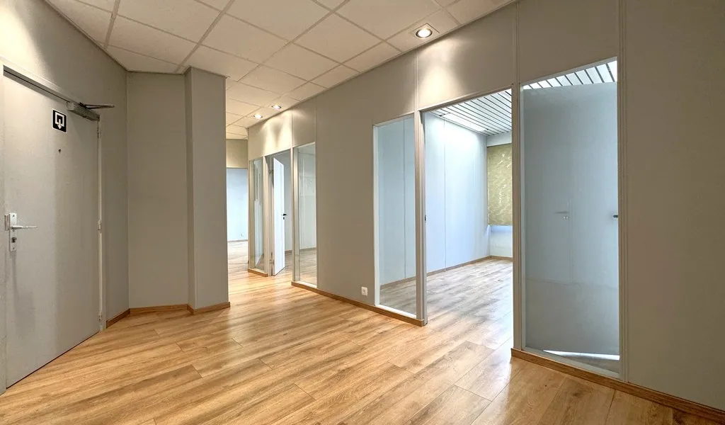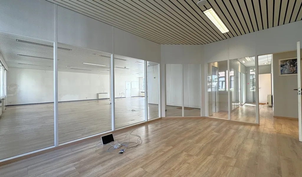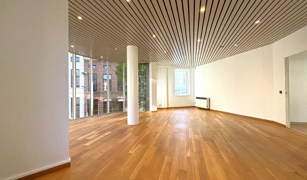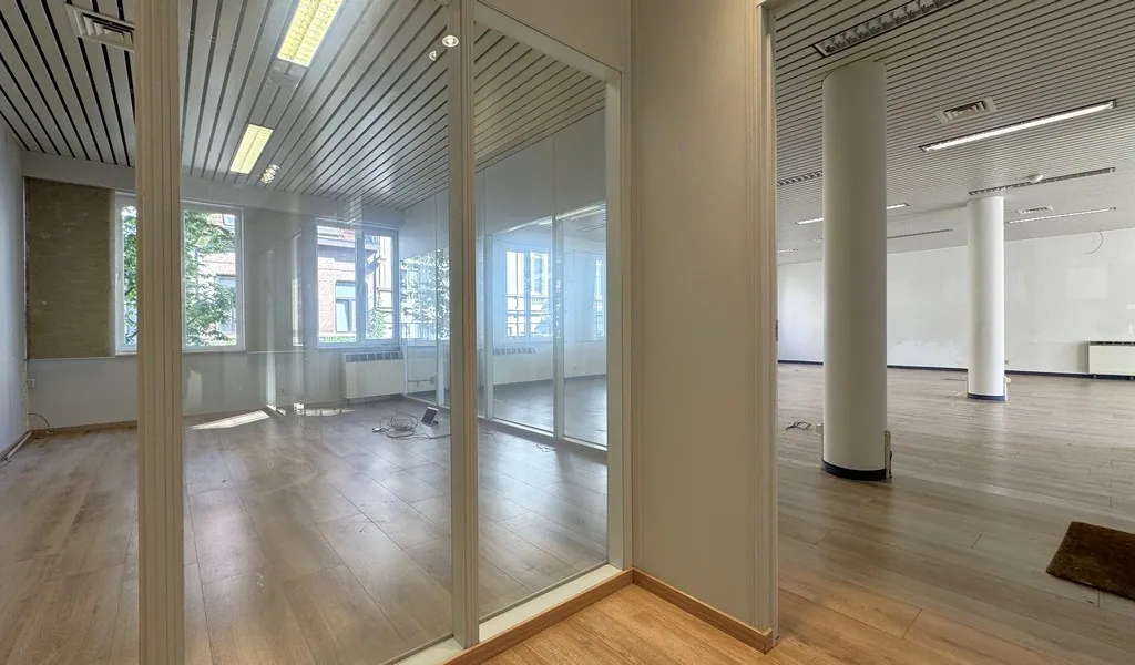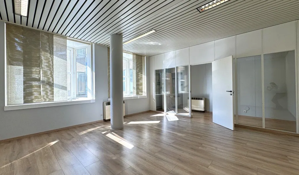 - 296m² kantoor op 1e verdieping met mogelijkheid tot 227m² opslagruimte op het gelijklvoers