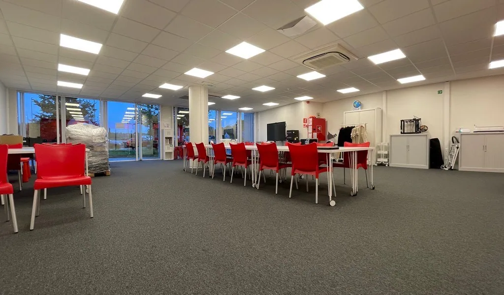 - Moderne werkplekken met vasttapijt en vloercontactdozen