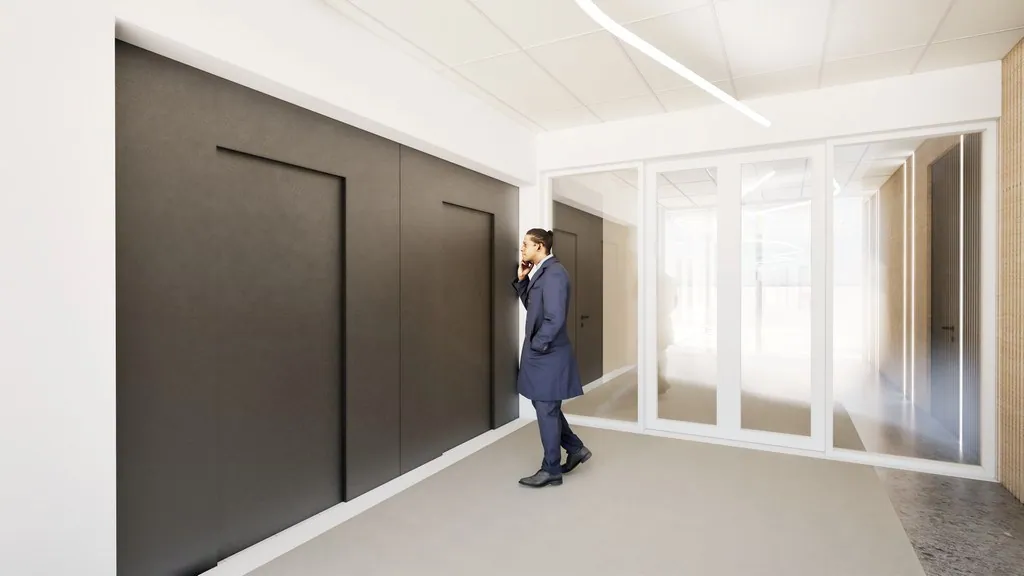 De kantoren zijn lichtrijk dankzij grote raampartijen met zicht op het groen. Verhoogde vloeren zorgen voor flexibele indelingen, terwijl verlaagde plafonds met akoestische inlegtegels en energiezuinige LED-verlichting bijdragen aan een comfortabele werksfeer. Alle verdiepingen worden voorzien van vernieuwde sanitaire ruimtes, fris schilderwerk, nieuwe vloerbekleding en een grondige renovatie.