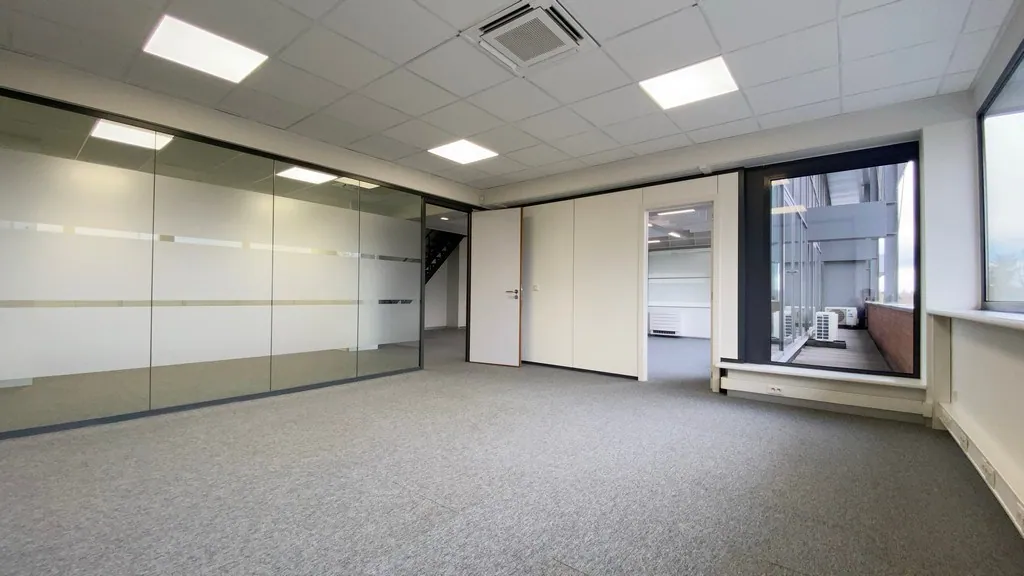 Ontdek deze instapklare kantoorruimte in het Dionysius KMO-center, een modern kantorencomplex gelegen in de Bijenstraat in Sint-Denijs-Westrem. De locatie biedt een uitstekende bereikbaarheid dankzij de nabijheid van de op- en afritten van de E40 en R4, vlak bij Flanders Expo en The Loop.
