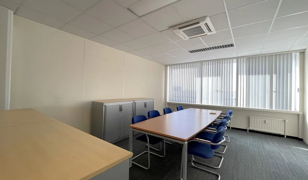 Op de eerste verdieping wacht een volledig ingerichte kantoorruimte van 500m² op jouw bedrijf. Deze professionele ruimte is voorzien van alle moderne faciliteiten: airconditioning, verlaagd tegelplafond, vasttapijt, kitchenette, gemeenschappelijk sanitair, cv op gas, parlofonie en lift.