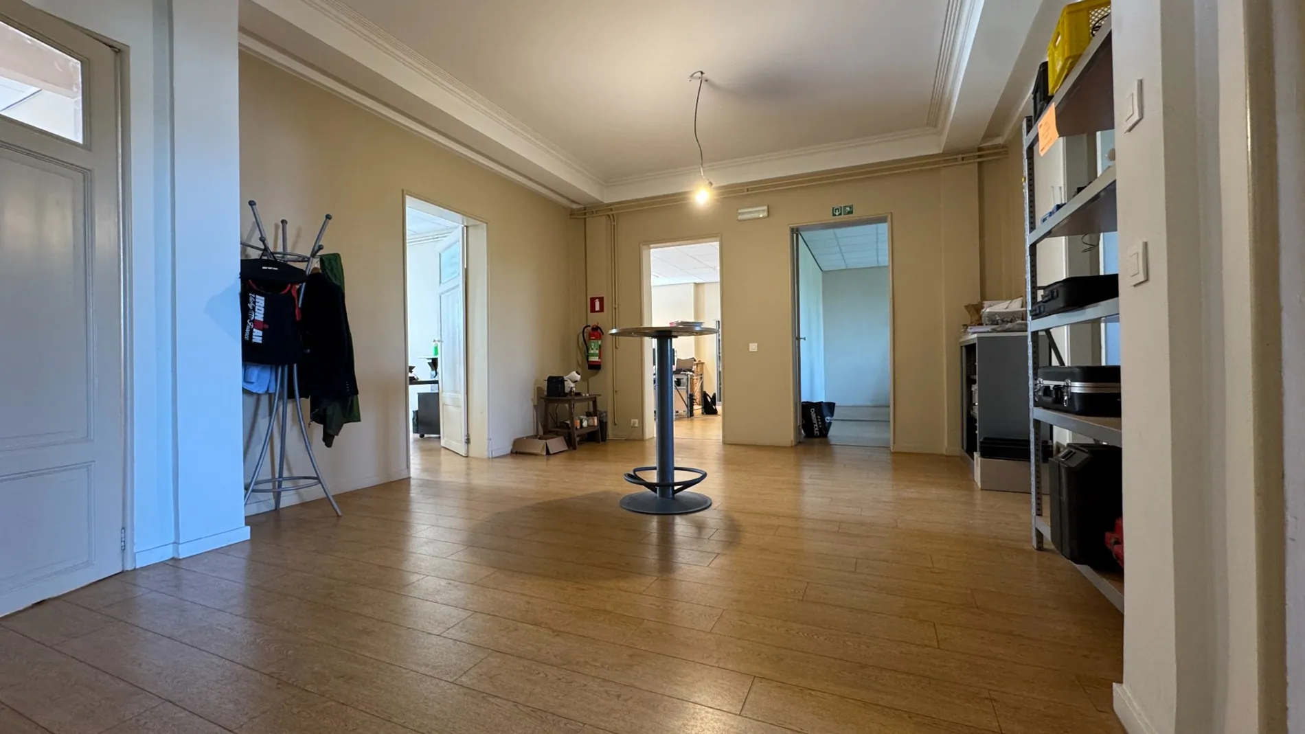 π’ 193m² kantoorruimte op de 2de verdieping, bestaande uit 2 grote landschapskantoren, 4 aparte burelen en gebruik van gemeenschappelijke keuken, vergaderzalen en sanitair op het gelijkvloers en de eerste verdieping