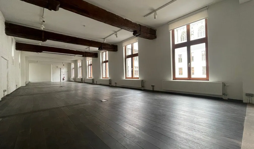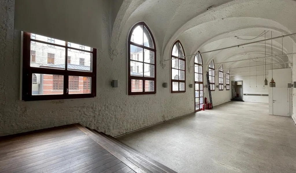 Karaktervolle kantoren te huur in het voormalige Sint-Paulusklooster vlakbij de Scheldekaaien aan de Sint-Paulusplaats in Antwerpen.