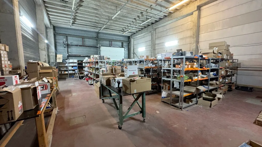 De loods is uitgerust met twee laadkades en drie sectionaalpoorten (2,8 m hoog), wat zorgt voor een efficiënte logistieke flow.
