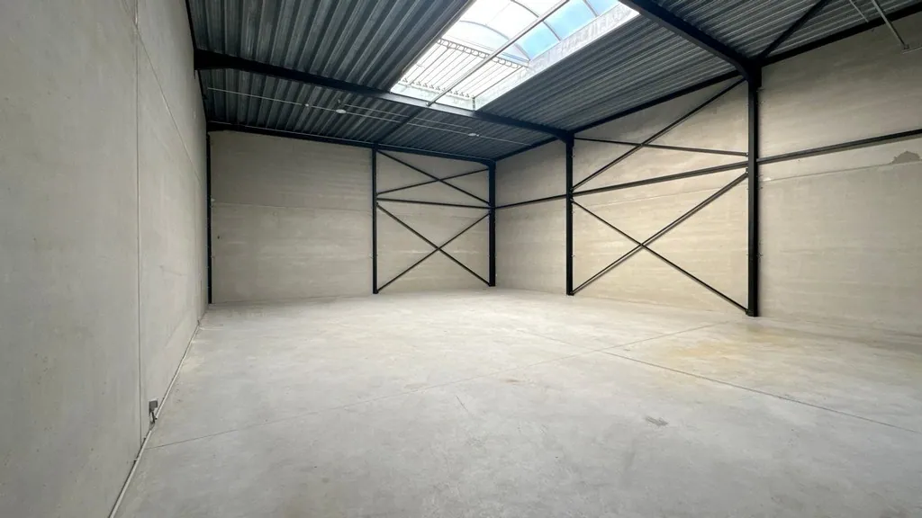 220m² instapklare opslagruimte met een sectionale poort (4m hoog), een toilet en 1 privatieve parkeerplaats