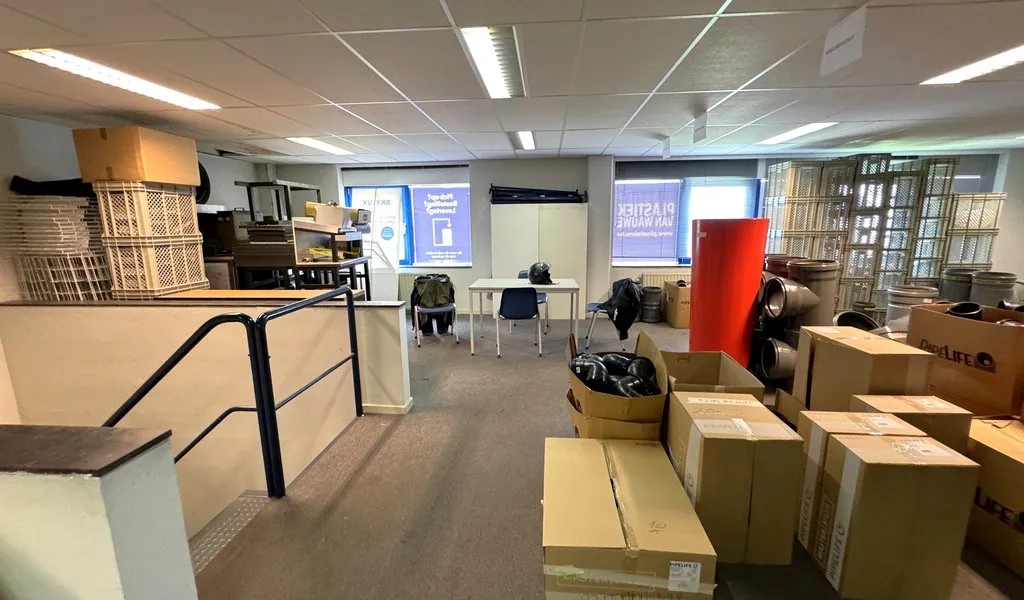 - Unit 1: 297m² kantoorruimte + 545m² magazijn + parkeerplaatsen