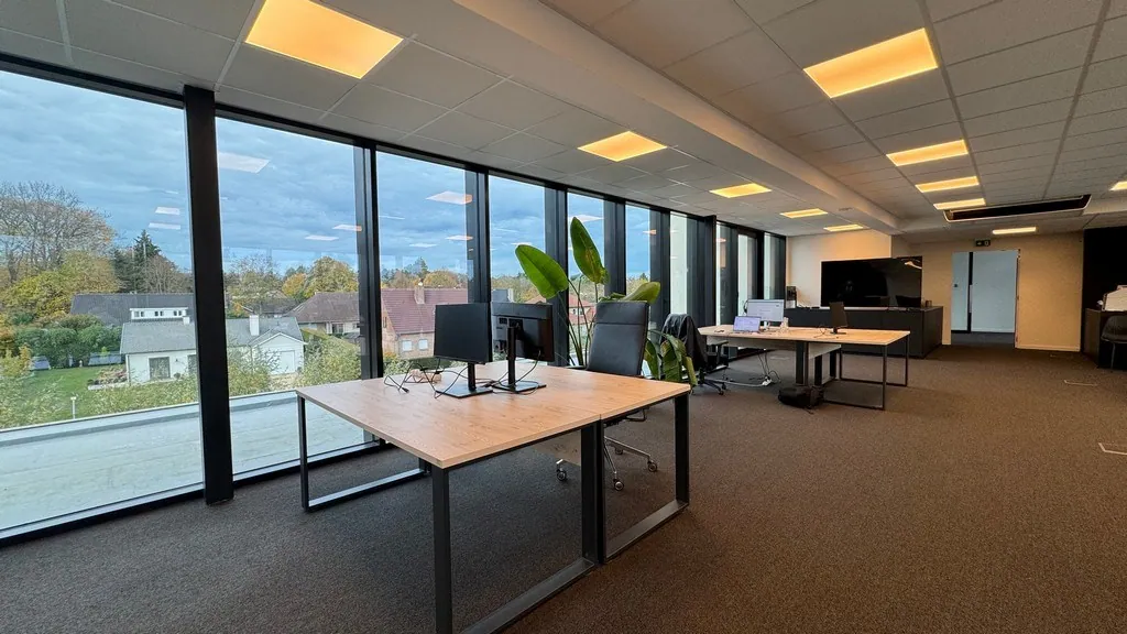 Trendy en volledig ingerichte kantoren te huur in een recent kantoorgebouw op een uitstekende zichtlocatie langs de Kortrijksesteenweg (N43) in Sint-Martens-Latem.
