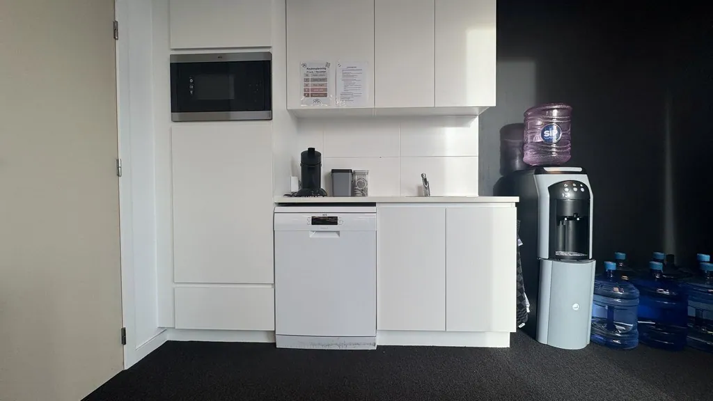 - 173m² ingerichte kantoorruimte op de 2de verdieping met kitchenette met toestellen en sanitair
