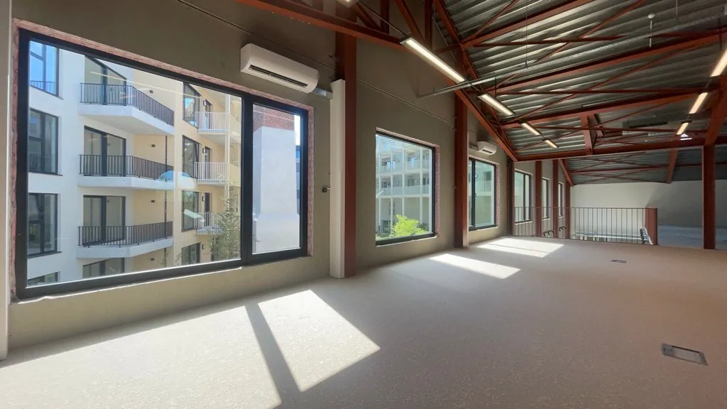 Deze duurzame kantoorruimte combineert het beste van beide werelden. Je werkt in een energiezuinig gebouw met zonnepanelen op het dak, terwijl de industriële architectuur en behouden historische elementen een unieke werksfeer creëren.