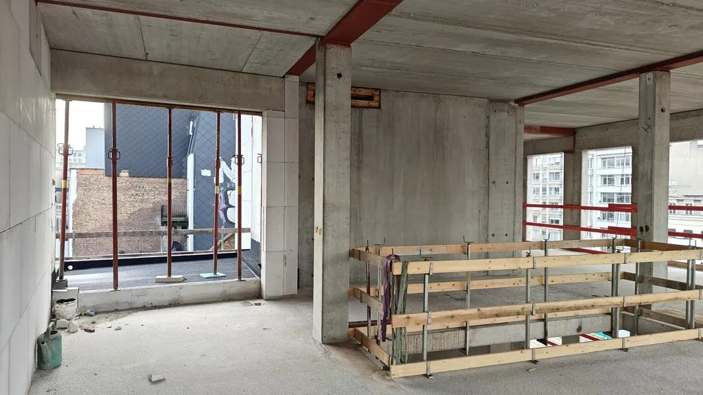Oppervlaktes vanaf 257m² à 549m² met standaardafwerking, privatief kitchenette en sanitair blok per dubbel verdiep. De verdiepingen worden gecombineerd per twee verdiepen via een interne trap. Oplevering voorzien: Q4 2026