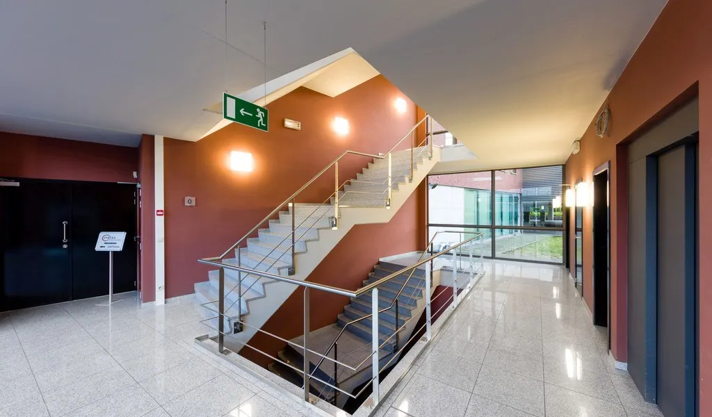 - brandalarm, toegangscontrole met badges/codeklavier, parlofoon, rookdetectie