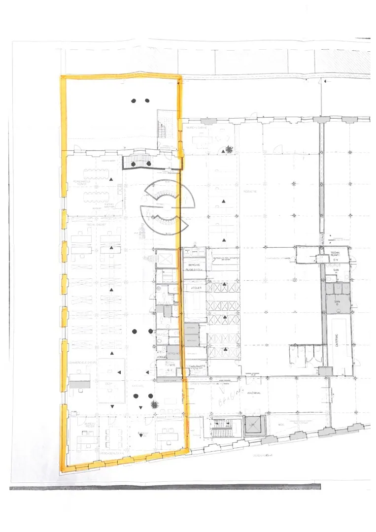 - 530m² kantoren op de eerste verdieping met privatieve keuken met refter, sanitair en terras (50m²)