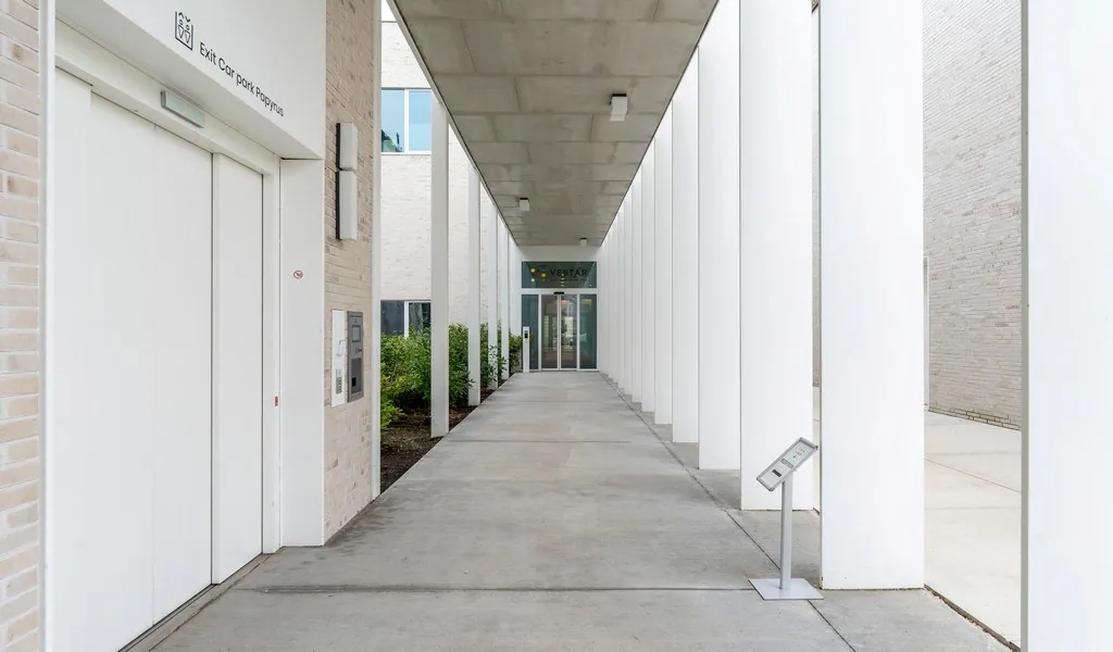Fietsende medewerkers kunnen gebruik maken van een beveiligde ondergrondse fietsenstalling, wat de duurzame mobiliteitsmogelijkheden verder onderstreept