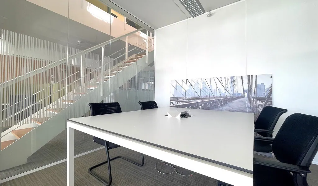 1.074 m² op de eerste en tweede verdieping: verbonden via een interne trap, met vergaderruimtes, uitgeruste keuken en gedeeld sanitair.